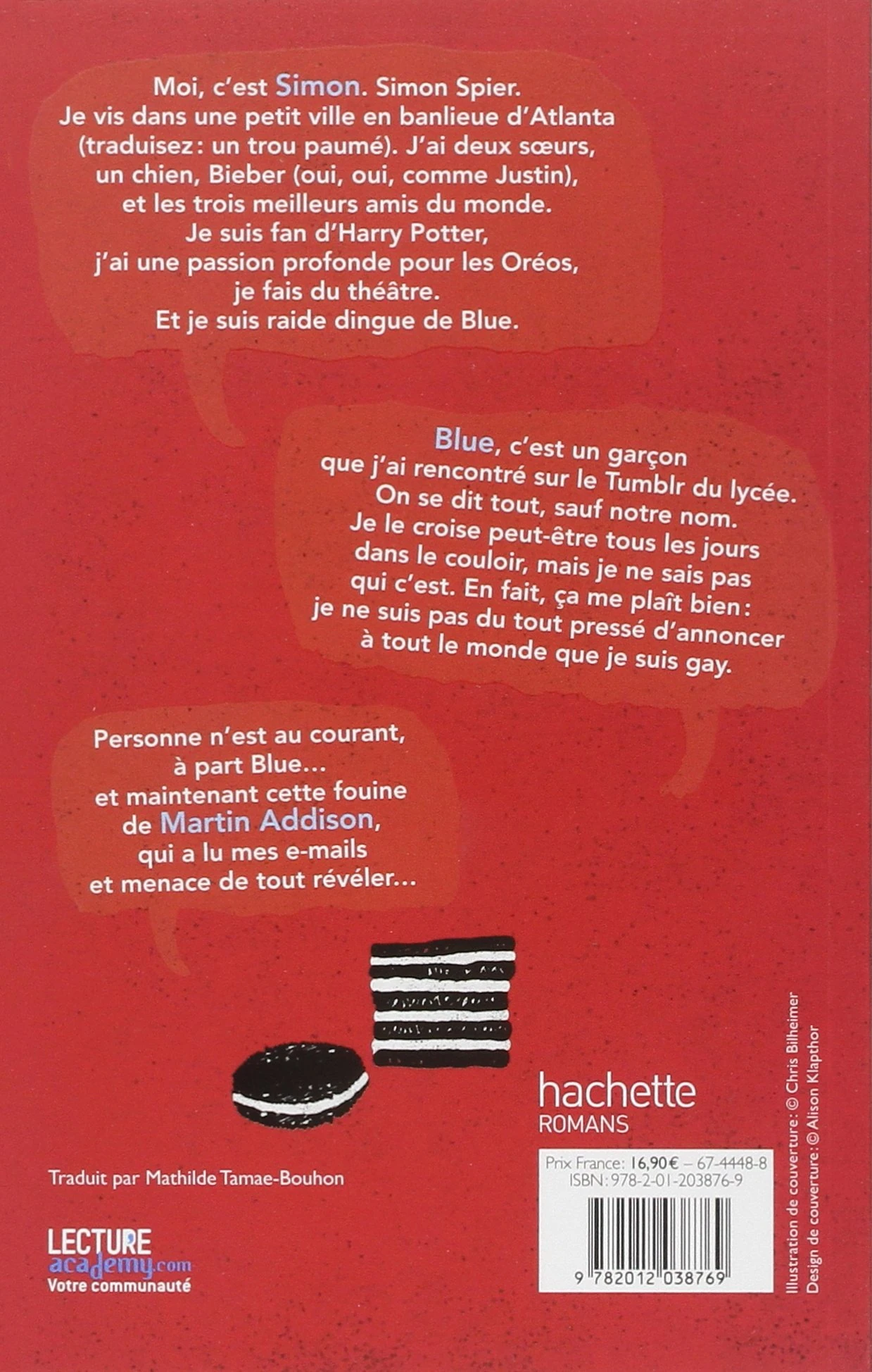 Simon Spier, 16 ans, est gay. Personne n’est au courant. Les seuls moments où il est vraiment lui-même, c’est bien à l’abri derrière l’écran de son ordinateur. C’est sur un tchat qu’il a "rencontré" "Blue". Il ne sait pas grand-chose de lui. Simplement :